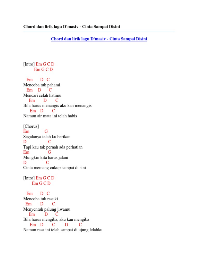 Chord Dan Lirik Lagu D Masiv Cinta Sampai Disini Pdf